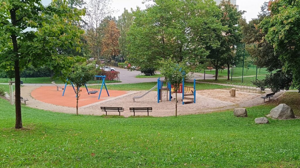 Walking trails loop through forested sections of the park and around portions of the lake, offering opportunities for quiet walks, light exercise, or time spent observing local wildlife. Picnic areas are spread throughout the grounds, making the park a popular choice for casual gatherings and relaxed afternoons outdoors. During warmer months, the designated swimming area attracts residents seeking a refreshing way to enjoy the season without leaving the city.