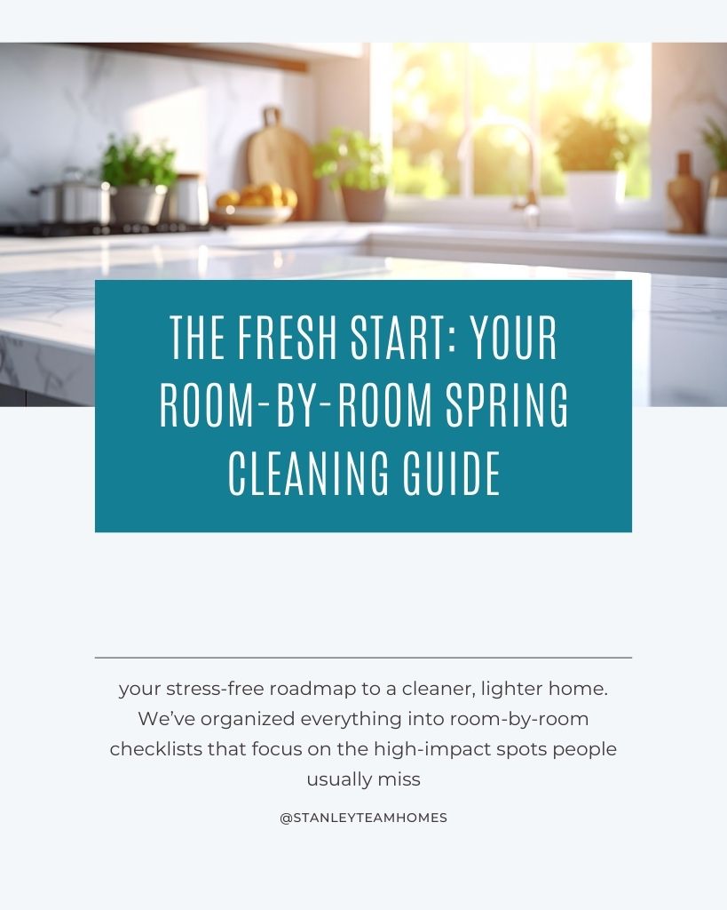 - Final Details: Sanitize the remotes, clean the coffee table, and shampoo the area rug to get rid of winter stains.
